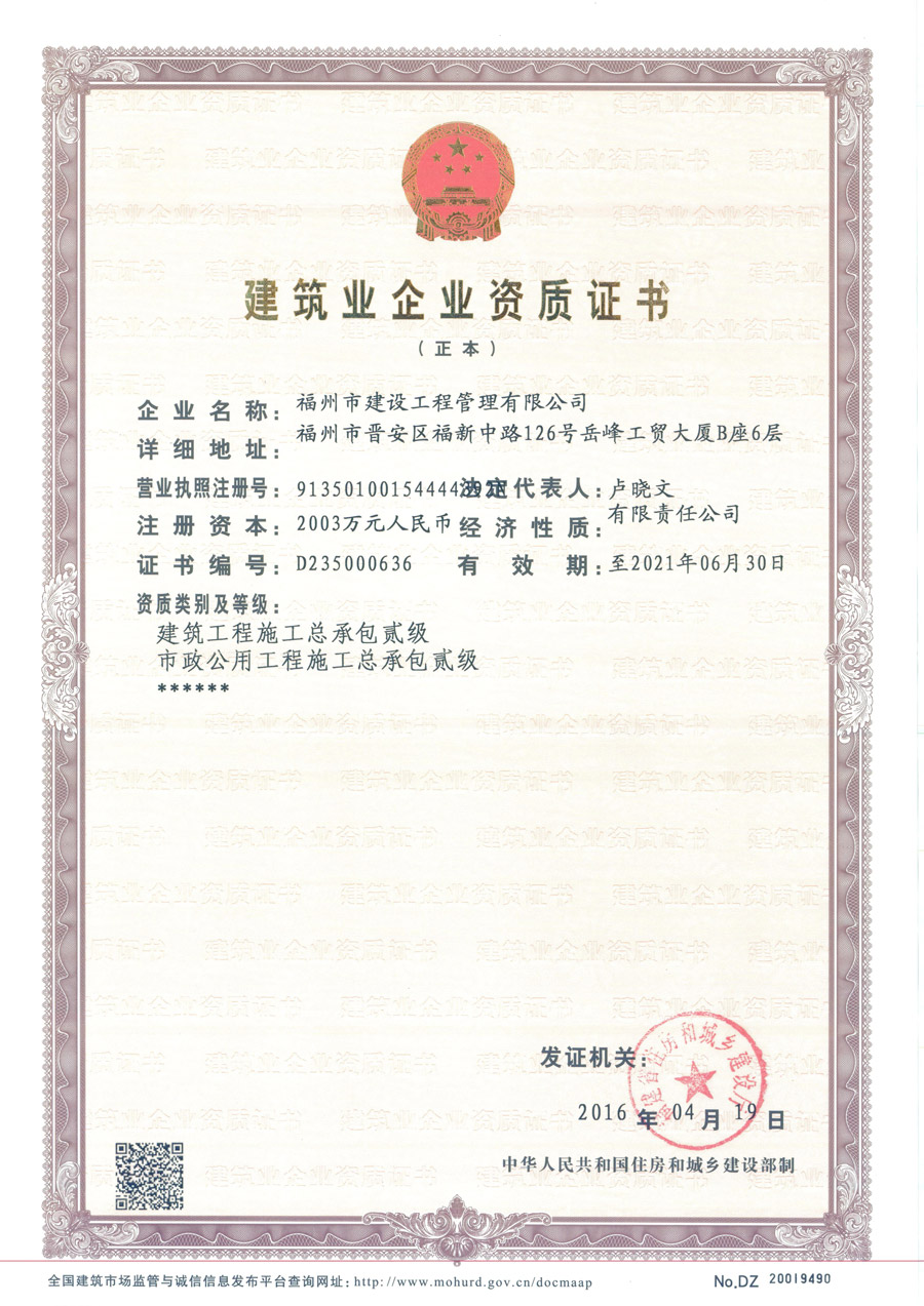 建筑業(yè)企業(yè)資質證書(二)